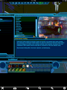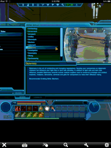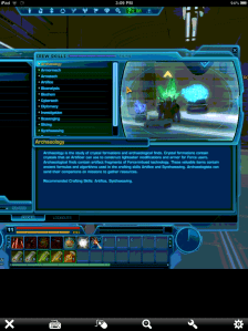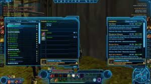 This is really kind of cool, since I love crafting, but also love questing. If I am going to be doing a lot of waiting around, I’ll send my companion to go craft. You automatically get a droid valet with the ship, which functions as a in-ship only companion that can be constantly on missions while you are out with a combat companion. That means a steady flow of materials. The time it takes to craft something is 3-6 minutes at level 10-20, which is just about perfect for a space combat mission. You can even craft while logged out. I can see a crafting app for smartphones in the game’s future.