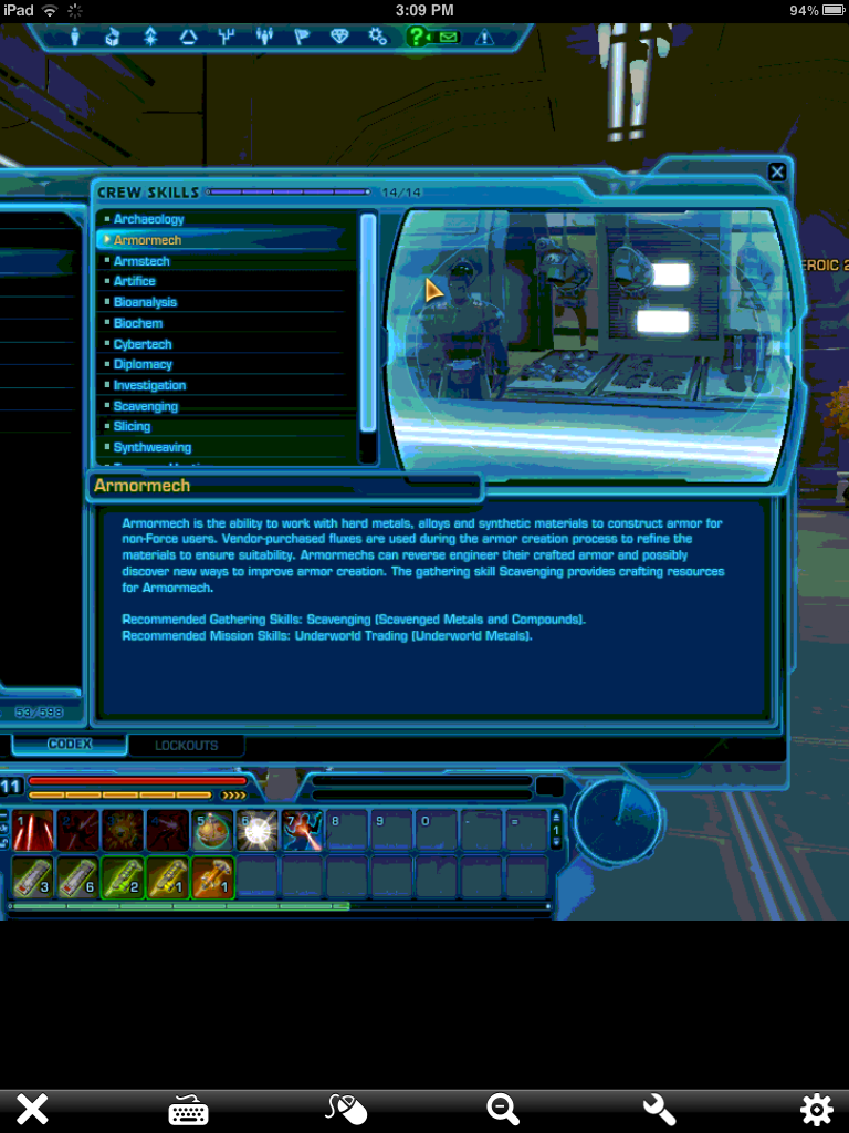 All of the Codex entries are screenshotted at the bottom of this post. Here are the main groupings:- Crafting: Armormech (non-Force-users armor)