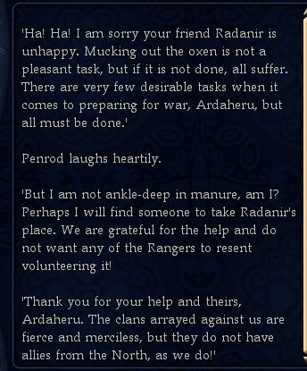 - Here is the quest I was referring to in this post about humor and engagement in the Epic story in Dunland.